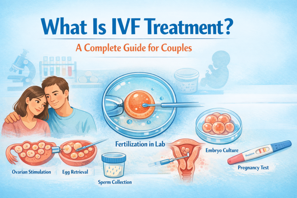IVF (In Vitro Fertilization) involves stimulating the ovaries, retrieving eggs, fertilizing them in a lab, and transferring a healthy embryo into the uterus.